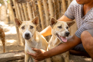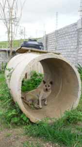 Flow wurde zusammen mit ihrer Schwester Ocean von einer Touristin gefunden. Die beiden waren wenige Tage alt und wurden zunächst auf einer Foster Stelle mit der Flasche aufgepäppelt. Als die beiden alt genug waren und ihre Grundimmunisierung abgeschlossen war, zogen sie in den Shelter um.